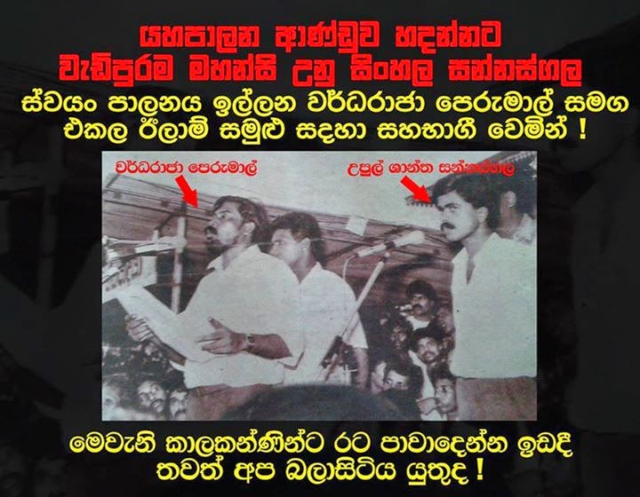මෑතකාලීන දේශපාලන හැසිරීම් හා ගලපන කල්හි මෙම කියමන  කොතෙක් දුරට සත්‍ය වන්නේද?එය වටහා ගැනීමට නම දේශපාලන බල කුමන්ත්‍රනයේ ප්‍රධාන චරිතයන්හි  (චන්ද්‍රිකා,රාජිත,චමිපික ) යටගිය දවස විමසා බැලිය යුතුය.රාජිත සහ චන්ද්‍රිකා යනු දෙමල ඊලම, සහ ඔවුන්ගේ  සන්නද්ධ අරගලයට සහාය දුන් මහජන පක්ෂයේ ආදි කතෘන් දෙනමකි. ඔවුන්ගේ  ප්‍රතිපත්තියට එරෙහිව අවි එසවූ ජවිපෙ වෙත  අවියෙන් පිලිතුරු දුන් ප්‍රා සංවිධානයේ නිර්මාතෘන්ය.88-89 වකවානුවේ එජාප රජය හා එක්ව  පාසැල් සිසුන්,බුද්ධ පුත්‍රයන් ඇතුලු 5000 ක් පමන පිරිසක් ඝාතනය කල අලුගෝසුවන්ය.චම්පික යනු මෙම වකවානුවේ ජවිපෙ ක්‍රියාකාරියෙකු ලෙස ප්‍රා සංවිධානයේ  අත් අඩංගුවට ගත් අයෙකි. පසුව අරගලය පමනක් නොව සිය සගයන්ද අමු අමුවේ පාවා දුන් ද්‍රෝහියෙකි.
