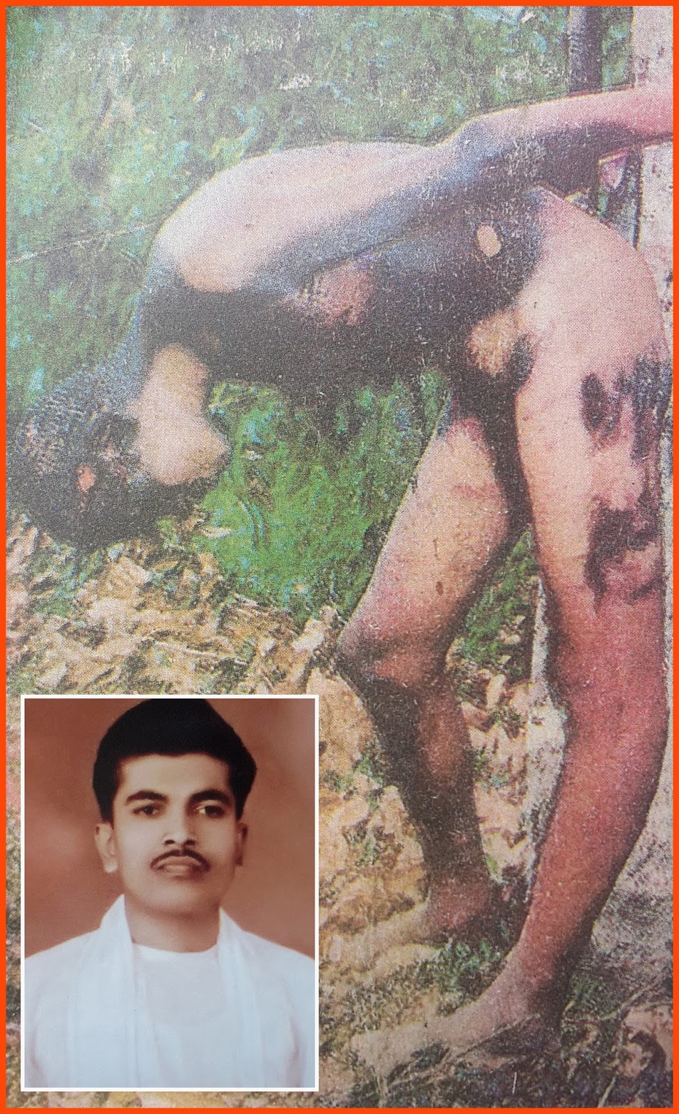 එජාප ප්රබල ක්රියාකාරිකයෙකුවූ හක්මන බෙංගමුවේ ඉඩම් හිමි වැවිලිකරුවෙකුවු බී.ආර්. ජයසේකර 1988 අප්රේල් 26වැනිදා ජවිපෙ විසින් ඝාතනය කර ගසක බැද පුළුස්සා දමා තිබූ අන්දම. ඔහුගේ ඡායාරූපයක් කොටුව තුළ දිස්වේ.