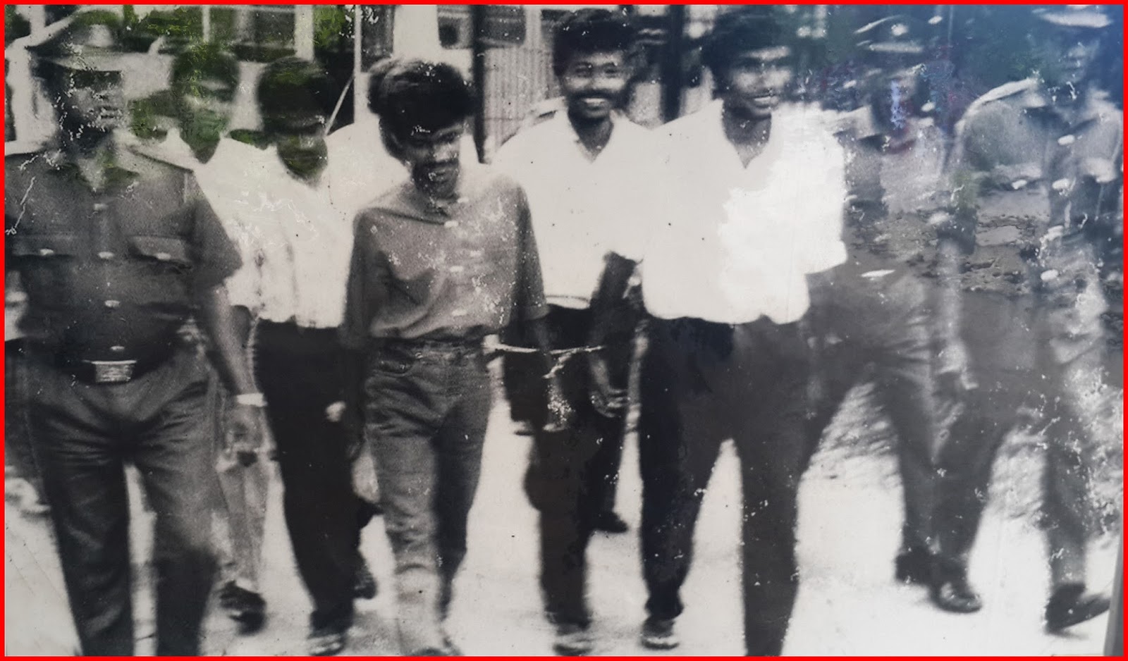 ඝාතනයට ලක්වූ කොළඹ වෛද්ය පීඨයේ සරසවි සිසු ත්රීමාගේ දේහය සුසාන භූමිය කරා රැගෙන යමින්. වෛද්ය පීඨාධිපති මහාචාර්ය නන්දදාස කෝදාගොඩද මෙහි වේ.