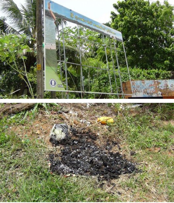 “මේ ප්රදර්ශණ පුවරු දේශපාලන පුවරු නෙමෙයි. ඒ පුවරු පුර නැගුම ව්යාපෘතිය හා දැදුරු ඔය ව්යාපෘතිය සම්බන්ධව දාපු ඒවා. හිටපු ජනාධිපති මහින්ද රාජපක්ෂ මහතා විසින් ලබා දුන්න ව්යාපෘති සම්බන්ධවයි දාලා තිබුනෙ. ඒකට මහින්ද රාජපක්ෂ හිටපු ජනාධිපති තුමාගෙත් වයඹ මහ ඇමති තුමාගෙත් හිටපු සිවිල් ගුවන්සේවා ඇමති පියංකර ජයරත්න මහතාගෙත් තව දේශපාලඥයන් කිහිප දෙනෙකුගෙත් රුව එකතු කරලා තිබුණා. පසුගිය 2014 වර්ෂය අවසානයේදී තමයි මේ පුවරු ඉදිකෙරුනෙ ඒවා ඉවත් නොකලේ අදාල ව්යාපෘති තමාත් අවසන් නැති නිසා. ඒ ව්යාපෘති තාමත් ඉදිවෙනවා. ඉතිං මේක විනාශ කලේ කාගේ උවමානාවෙන්ද එහෙමත් නැත්තනම් කාගෙ හරි අනුබල දීමකින්ද කියන්න අපි දන්නෙ නෑ. කව්රු කෙරුවත් මේවා අපි අනුමත කරන්නෙ නැති දේවල් යහපාලනය මේකද කියලා අපි ප්රශ්ණ කරනවා.”