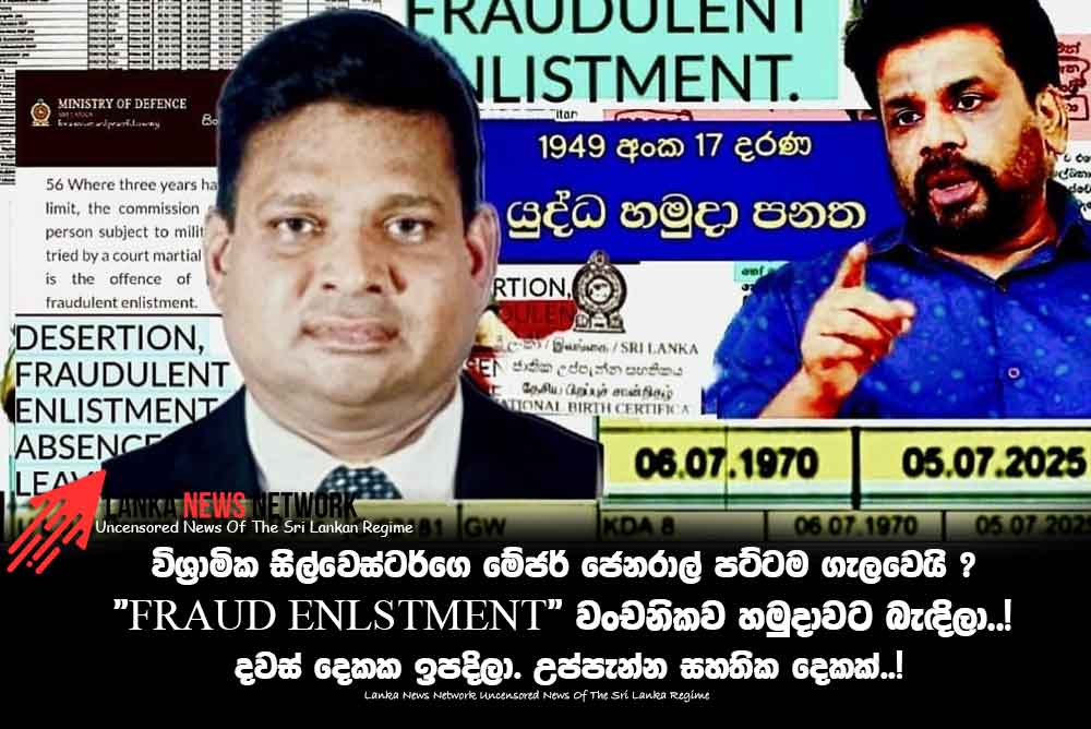 විශ්‍රාමික සිල්වෙස්ටර්ගෙ මේජර් ජෙනරාල් පට්ටම ගැලවෙයි ? “FRAUD ENLISTMENT” වංචනිකව හමුදාවට බැඳිලා..! දවස් දෙකක ඉපදිලා. උප්පැන්න සහතික දෙකක්..!