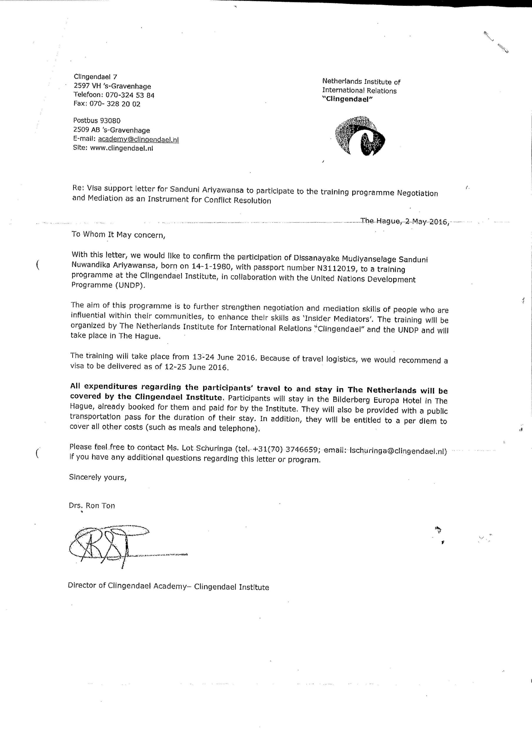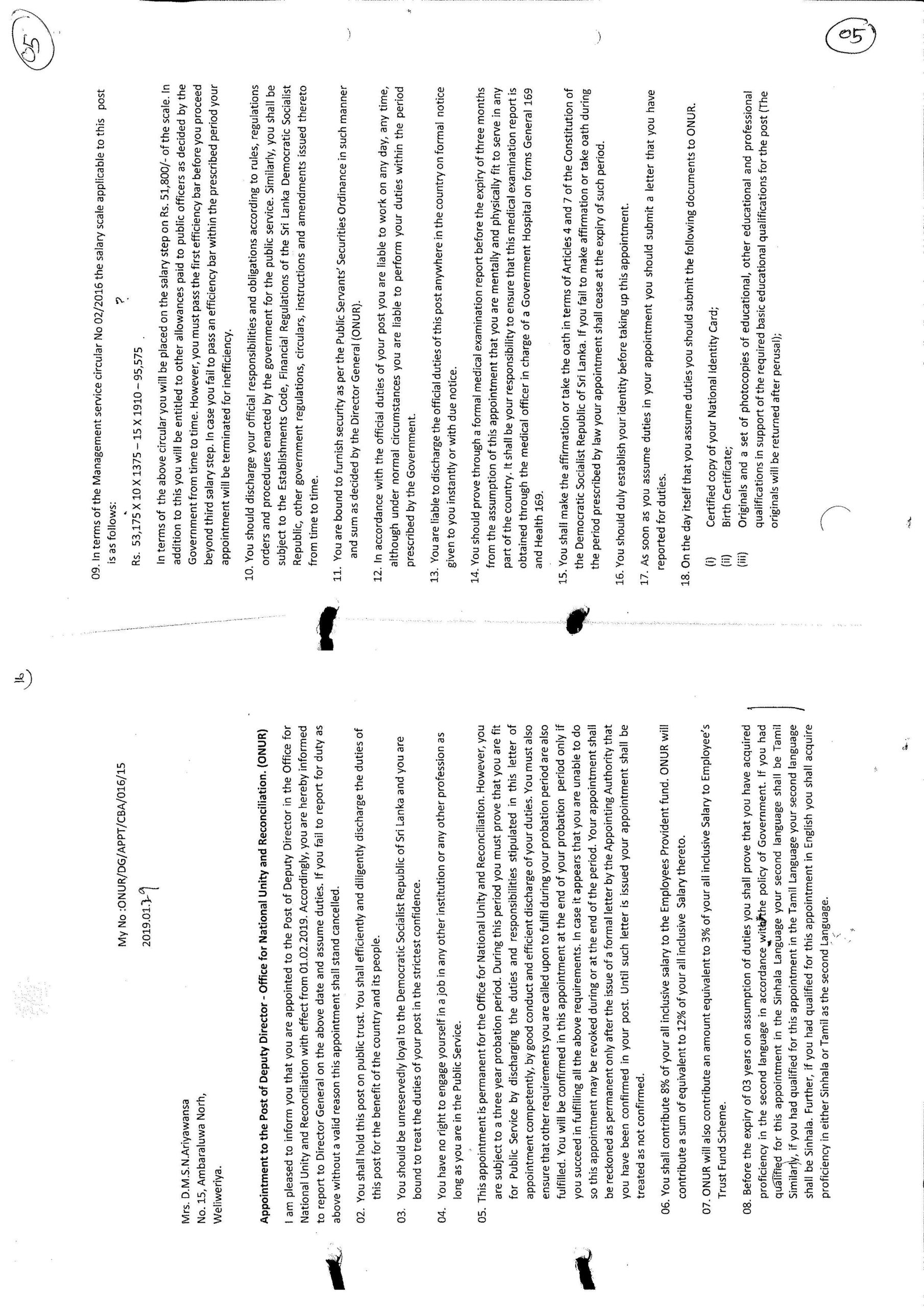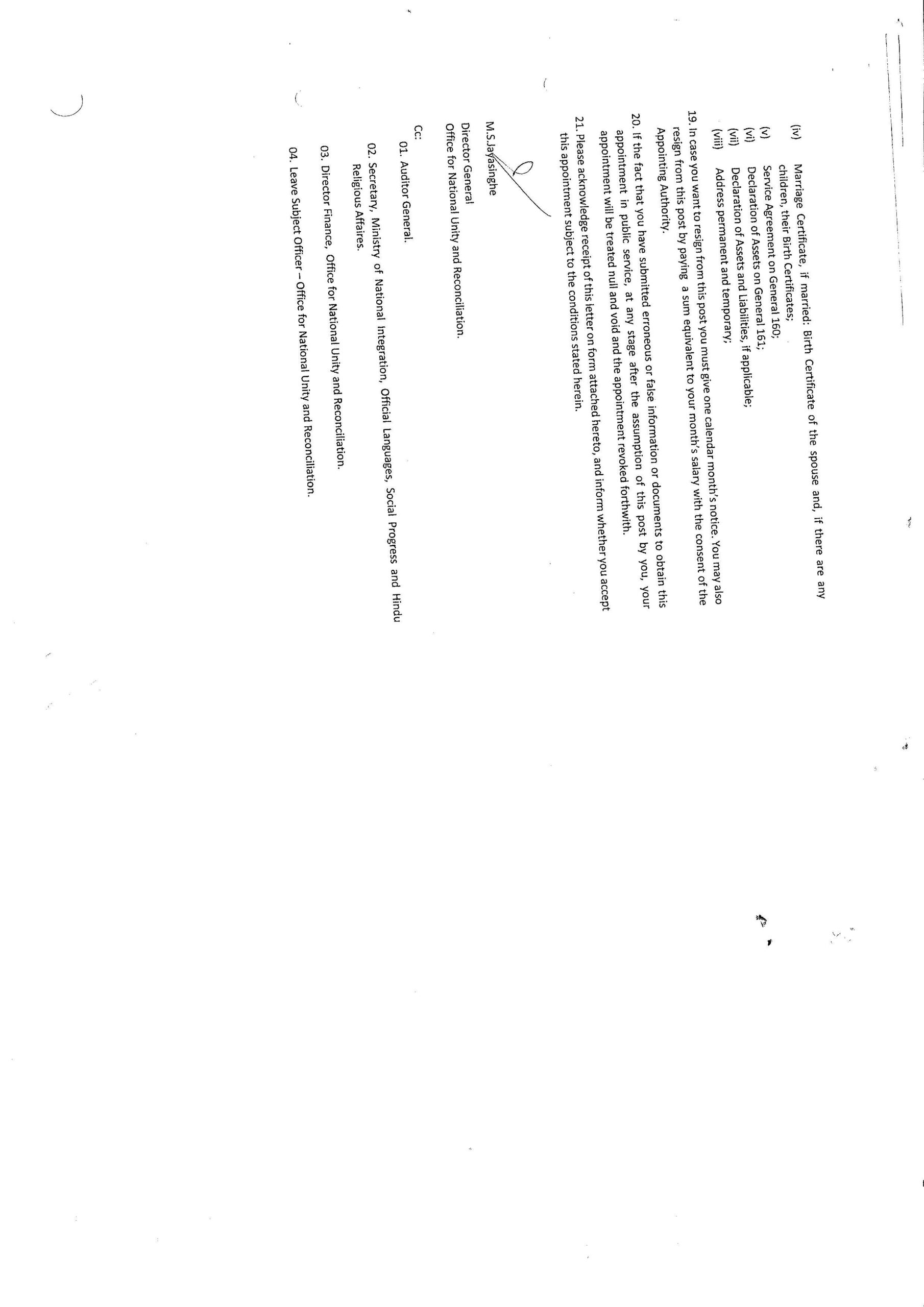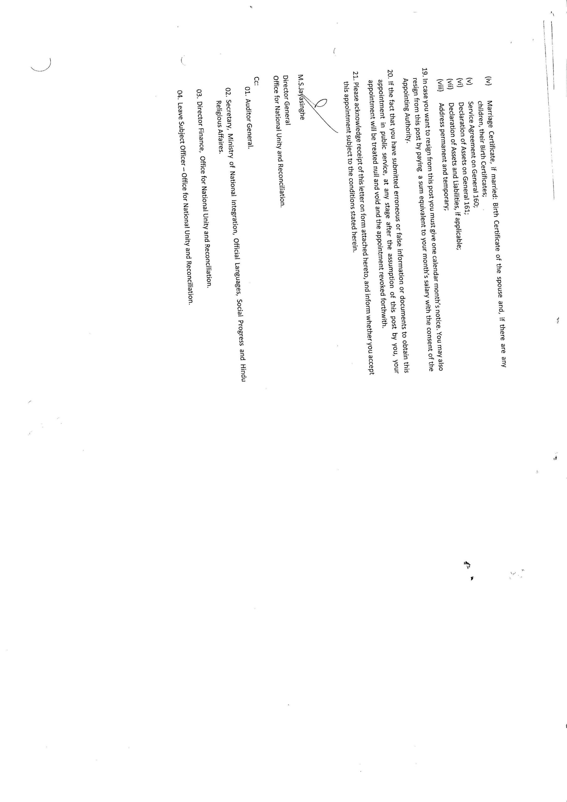 ඒ අතරතුර මෙම කාර්යාලය සඳහා ඔහු අධ්යක්ෂ ජනරාල් තනතුරට පත් කිරීමට අධිකරණ අමාත්යාංශයේ ලේකම්වරිය කටයුතු කළ අතර ( එය ඉතා වැදගත් වන්නේ, මේම කාර්යාලය සදහා දමිල භාෂාව හැසිරවිය හැකි නිලධාරීයෙකු අත්යාවශ්ය ව පැවැති නිසාය), එම ලිපිය ලැබීමට පෙර මෙම ආයතනයේ සභාපතිවරයා විසින් ඔහුව විශ්රාම ගැන්වීමටත්, ඒ වෙනුවට සඳුනි ආර්යවංශ පත් කිරීමටත් කටයුතු කර ඇත.