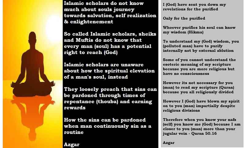So called scholars separate this for their convenience to pardon the sins and evils through so called rewards. An evil nafs (self) cannot be eliminated or purified by religious supplications or transactions. For instance, man give his supplications and God pardon his sins and give rewards. There is no such transactions and dealings with God (Allah) the law of nature. The evil self (nafs) has to undergo self-realization which is a process a human soul has to undergo. How an extremely evil soul purify itself overnight?