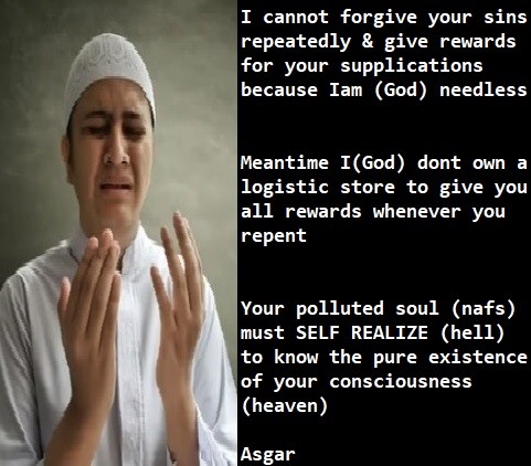 His (God) WILL cannot be known by repenting to forgive sins, give supplications and earning the so-called REWARDS and committing the sins and repenting again repeatedly as a routine.