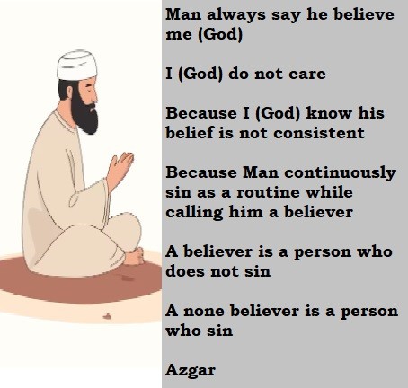 However, man affirm that he strongly believes God but he himself knows his belief is not consistent because he (man) sin continuously as a routine.